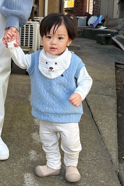 ひとり歩き はーい!の手を上げる 掴み食べ 手をパチパチ 頬にちゅーをする 美味しいのポーズ バイバイ 乾杯 投げキッス